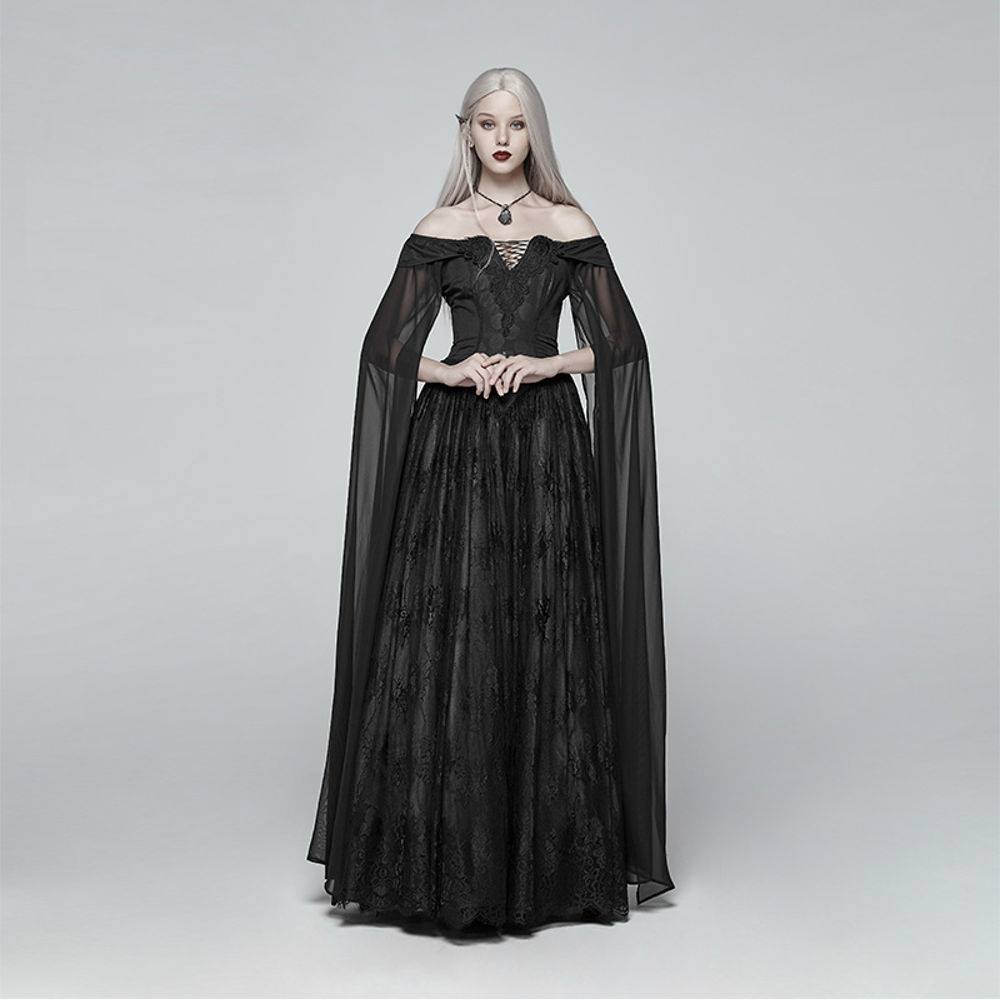 Viktorianisches Schwarzes Brautkleid Schulterfrei Voodoomaniacs
