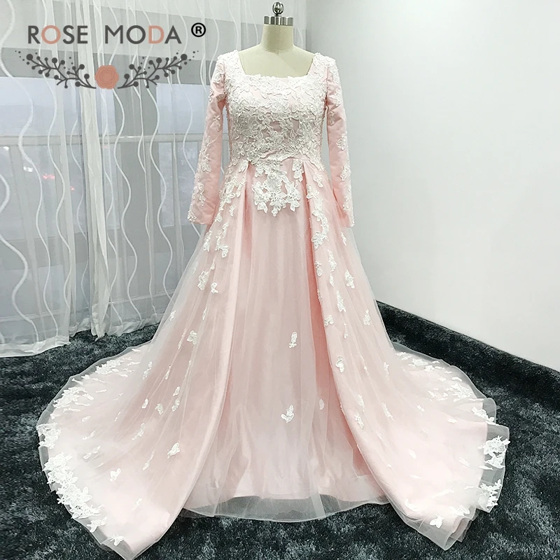 Rose Moda Langen Armeln Muslimischen Rosa Hochzeitskleid Vintage Spitze Brautkleid Passendem Schal Optional Vintage Lace Wedding Lace Wedding Gownrose Moda Aliexpress