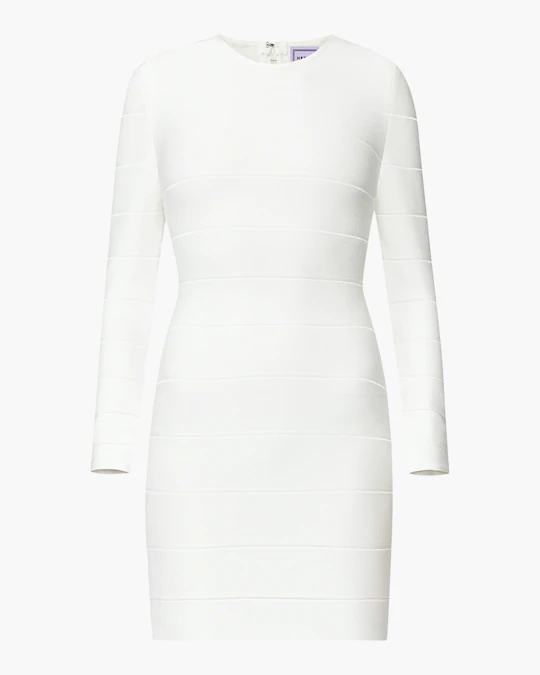 Herve Leger Long Sleeve Mini Sheath Dress In White Modesens