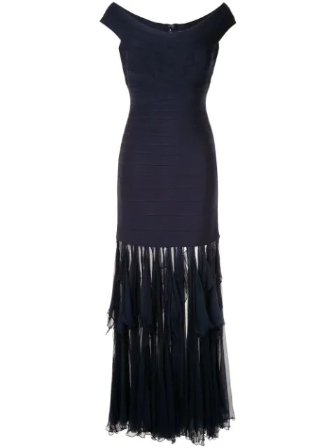 Herve Leger Long Fringed Bandage Dress Farfetch