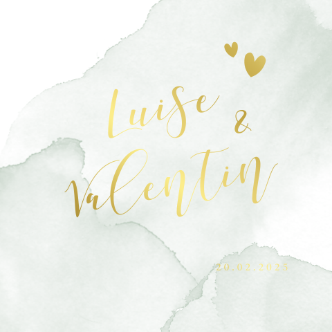 Hochzeitskarte Mit Gold Und Graugrunem Aquarell Look