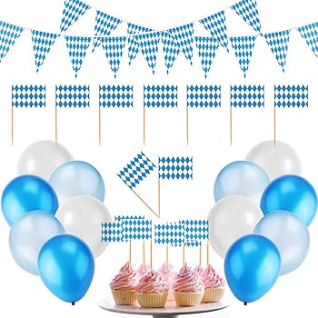 Oktoberfest Dekoration Set 10m Bayrisch Wimpelkette 12 Blau Weiss Hellblau Luftballons 50 Flaggenpicker Topper Oktoberfest Party Deko Dekoration Amazon De Kuche Haushalt