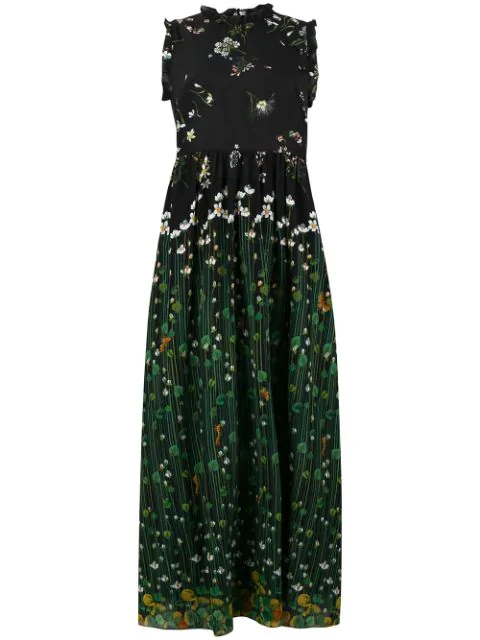 End of layer content. Red valentino floral pleated maxi dress in multi. Floral print pleated skirt in neutrals.