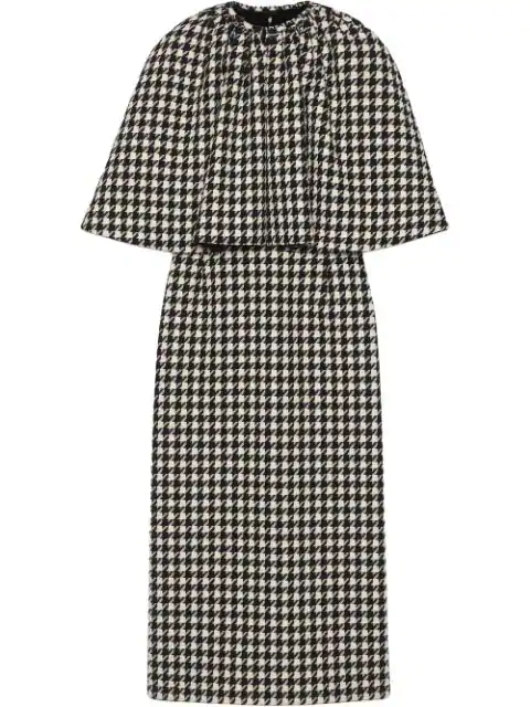 Gucci Houndstooth Midi Dress With Removable Cape In Black Modesens