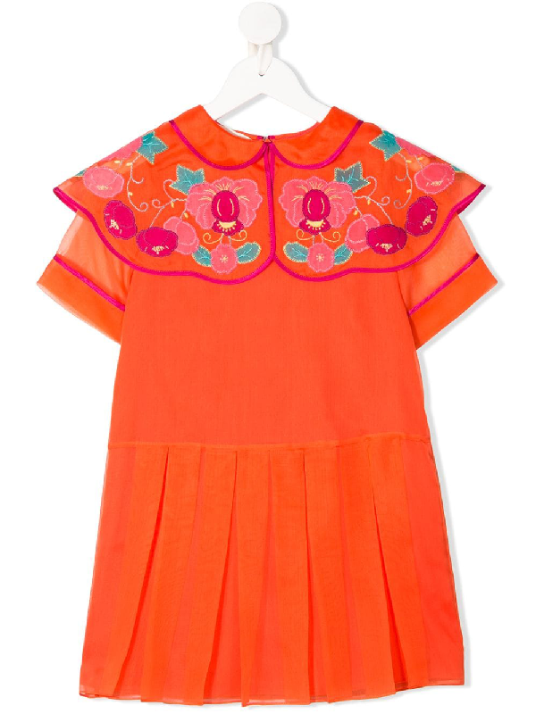 Gucci Kids Kleid Mit Geblumtem Kragen In Orange Modesens