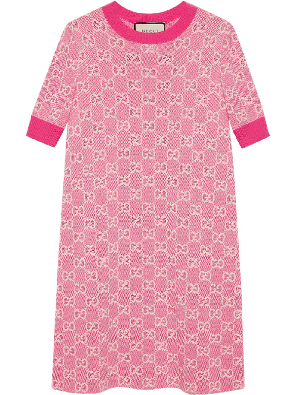 Gucci Gg Jacquard Knit Wool Cotton Dress Fuchsia Luisaviaroma