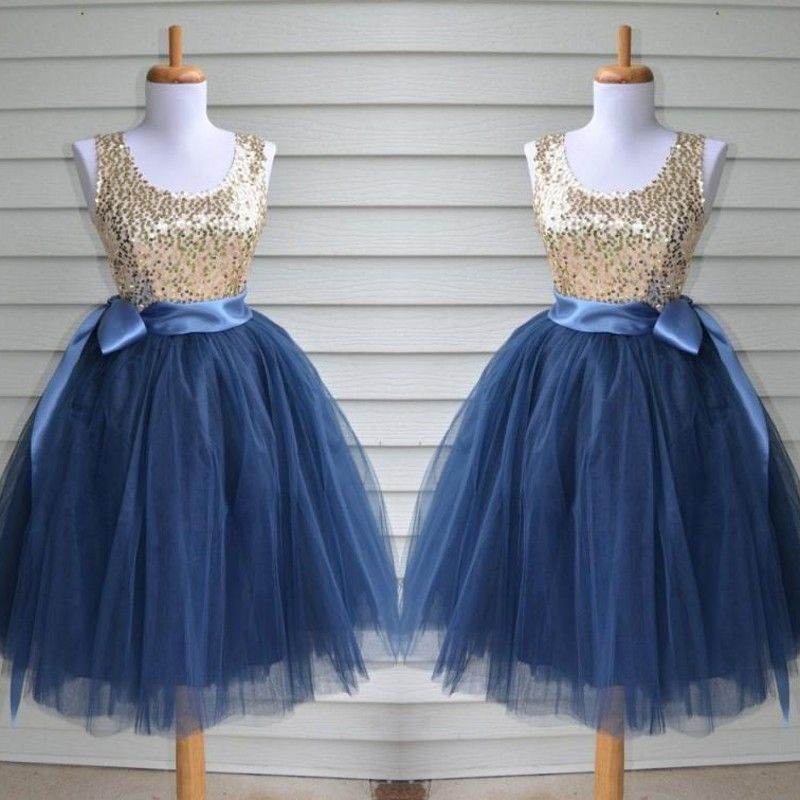 Grosshandel Gold Pailletten Und Blau Tull Brautjungfernkleider Fur Hochzeit Kurzes Brautjungfernkleid Mit Band Scharpe Gunstige Cocktail Party Kleid Von Sexypromdress 63 84 Auf De Dhgate Com Dhgate