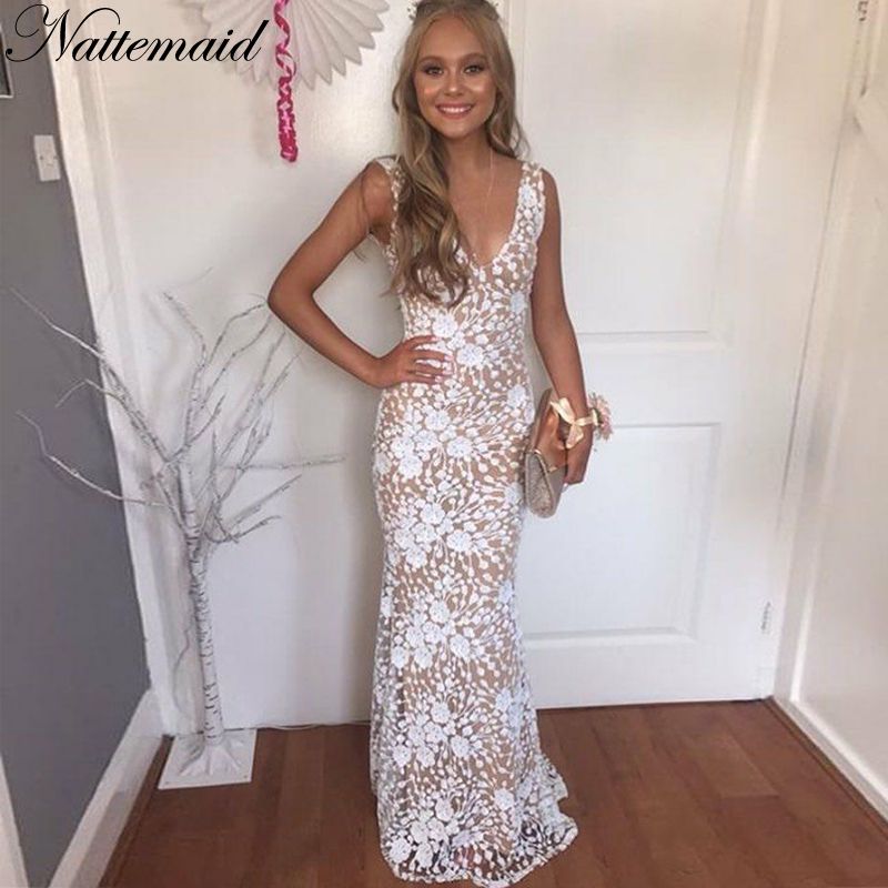 Grosshandel Natteemaid Lange Maxi Backless 2018 Frauen Kleider Sommer Abendgesellschaft Weisses Kleid Sexy V Ausschnitt Elegante Pailletten Spitzenkleid Vestidos Von Philipppe 37 42 Auf De Dhgate Com Dhgate