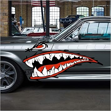 Finest Folia Hai Aufkleber Dekor Set Augen Zahne Selbstklebend Haimaul Fur Fahrzeuge Auto Lkw Wohnmobil Truck Bus Kotflugel Helm Rx008 V1 114 X 35cm Amazon De Auto